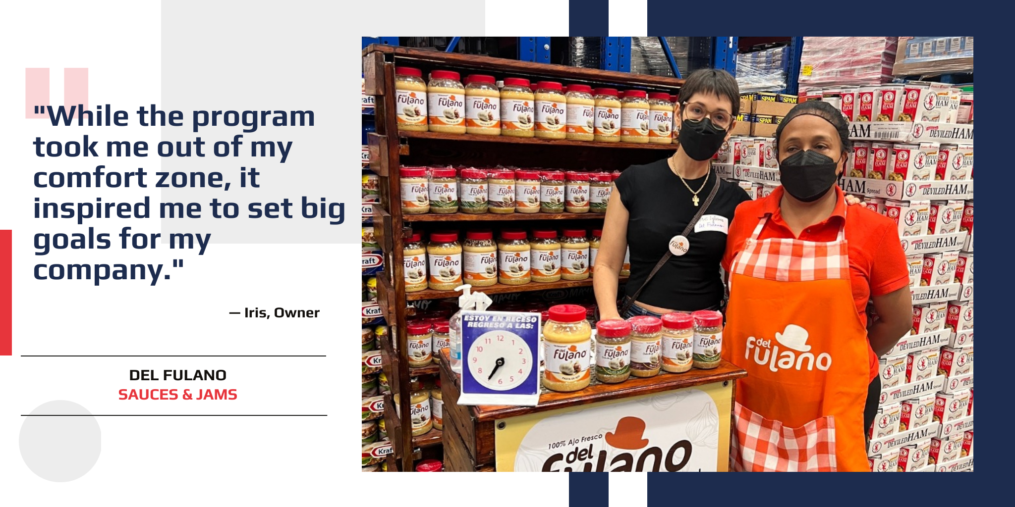 Iris of Del Fulano, which makes sauces and jams, said that while EMPRO took her out of her comfort zone, it inspired her to set big goals for her company. She found many ways to improve her company, such as introducing written standardized processes and optimizing the efficiency of her operations. The mentorship component of the program helped her to prioritize which initial changes would be most effective, and how to tackle them one by one. During EMPRO Iris featured her sauces in PriceSmart as a Roadshow vendor!