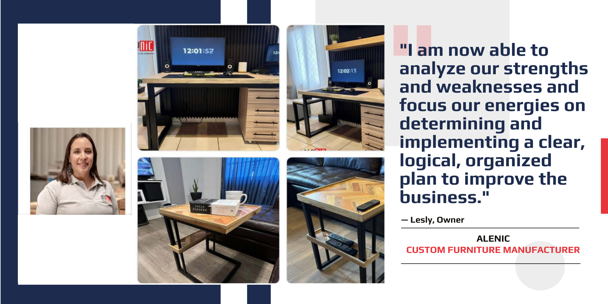 Lesly of Alenic, a custom furniture manufacturer, increased her monthly sales by 56% over the course of the training from US$3,200 to US$5,000! Lesly says that through EMPRO, “I developed an entirely new perspective of my business. While I was once flying on instinct, I am now able to analyze our strengths and weaknesses and focus our energies on determining and implementing a clear, logical, organized plan to improve the business. We are now working hard to formalize our processes and improve our administration and will soon be ready to present an innovative new business model that we expect will delight our customers.”
